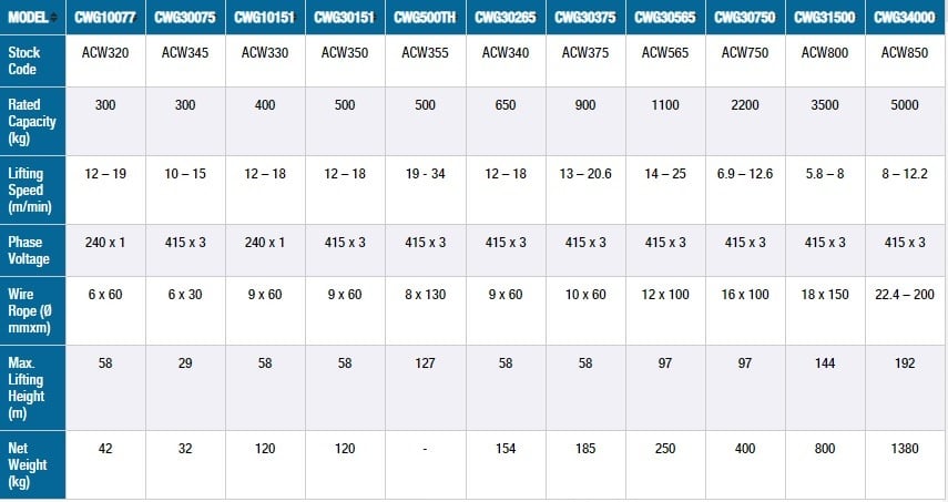 Electric Winches – CWG Range