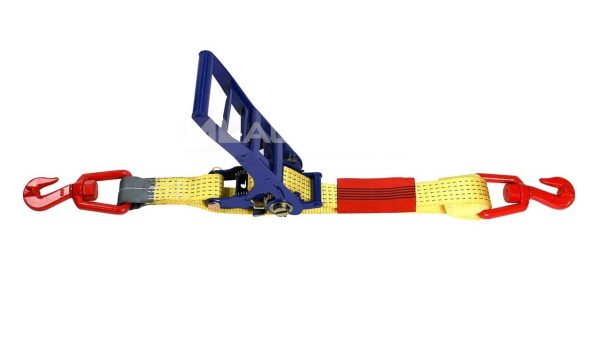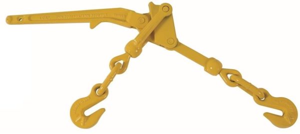Ratchet style load binder with winged grab hooks combined with Grade 70 chain is an effective way to restraint heavy loads for transport operations, with the benefit of high pretension and the added safety of screw stops to ensure full thread contact while in use.