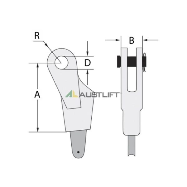 | Size (mm) | WLL (T) | Weight (kg) | A (mm) | B (mm) | C (mm) | D (mm) | R (mm) |