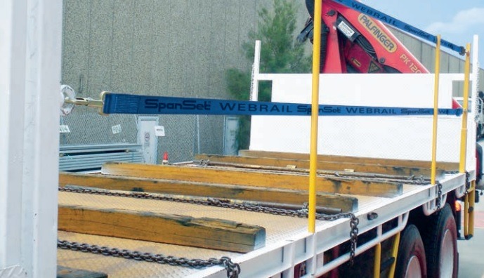 Web Rail by SpanSet is an effective solution to fall protection from the back of heavy vehicles. Featuring their patented Tension Force Indicator and Kevlar Core Webbing, this simple to use system gives significant improvements to current practices during the loading and unloading/rigging processes.